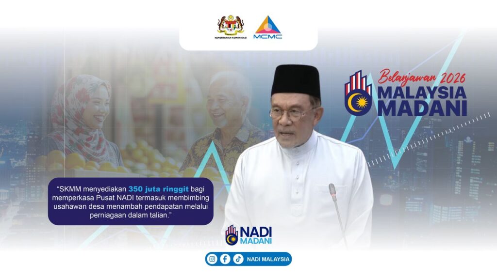 Sebanyak RM350 juta telah diperuntukkan oleh Suruhanjaya Komunikasi dan Multimedia Malaysia (MCMC) bagi memperkasa pusat NADI, termasuk membimbing usahawan desa menambah pendapatan melalui perniagaan dalam talian, seperti diumumkan oleh YAB Dato’ Seri Anwar Ibrahim, Perdana Menteri Malaysia, ketika pembentangan Belanjawan 2026.